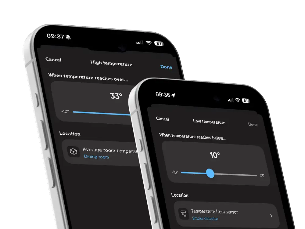 That’s why we’re introducing full temperature monitoring with intuitive, easy-to-read graphs that provide instant insights into the indoor climate of each room, whether at home or in a holiday house or cabin, all at no additional cost.