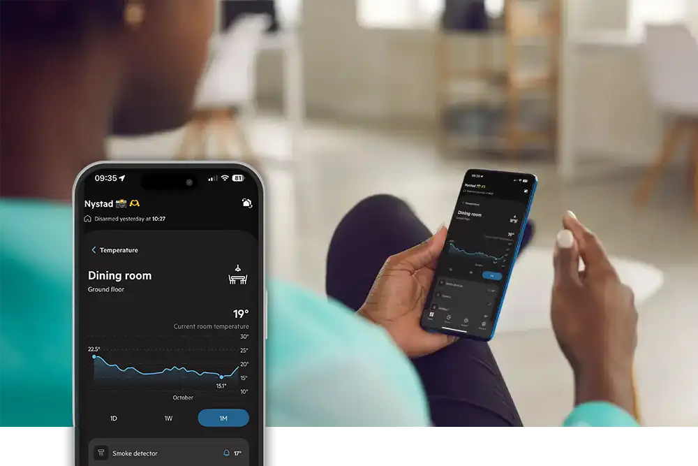 Each Sector Alarm component with built-in sensors, such as our shock sensors and smoke detectors, now provides continuous temperature data. Wherever a sensor is installed, customers can easily track the temperature of that specific room directly in the Sector Alarm App. From the living room to the holiday cabin, they can follow how temperatures change throughout the day or across seasons through clear, easy-to-read graphs, room by room.